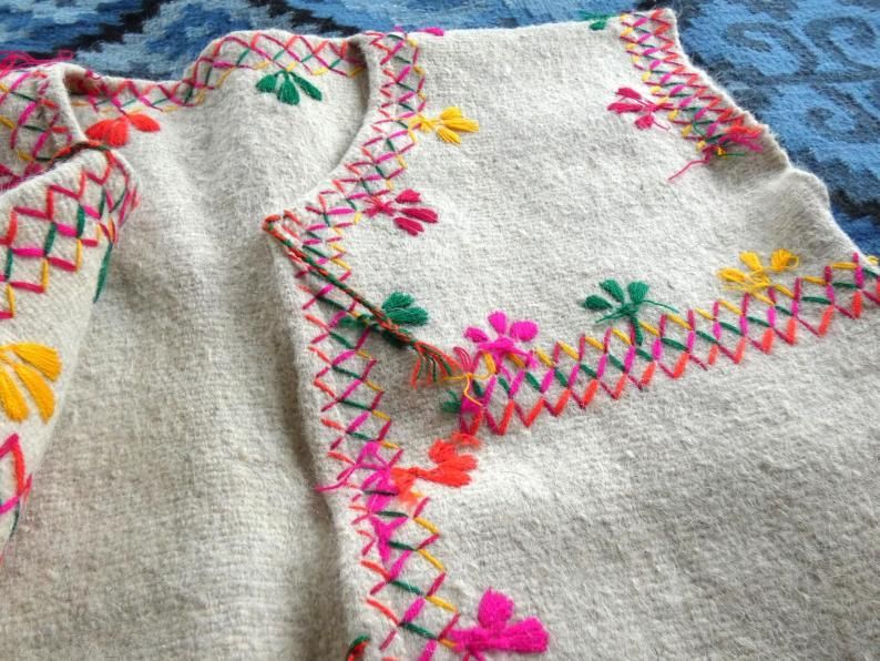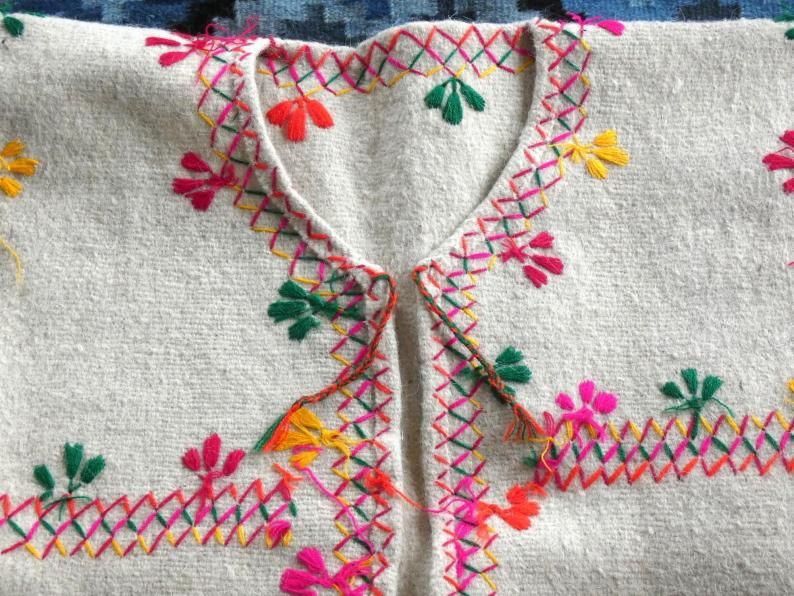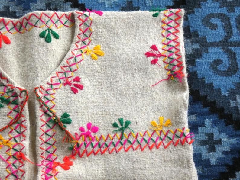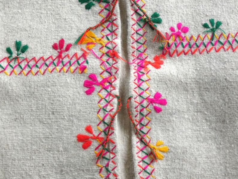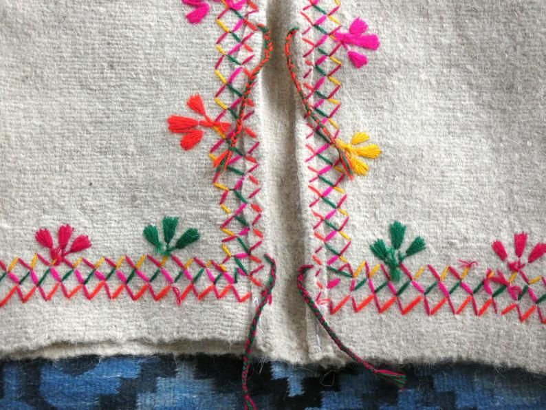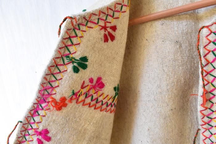 厚手の羊毛に鮮やかな刺繍の入った