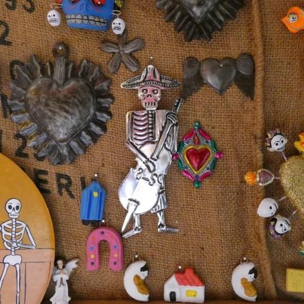 カラベラ(ガイコツ)のブリキの壁飾り。