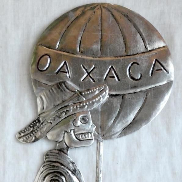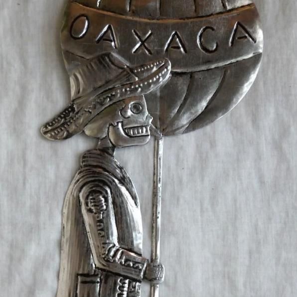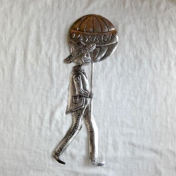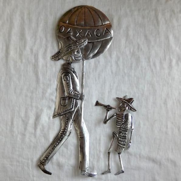 カラベラ(ガイコツ)のブリキの壁飾り。