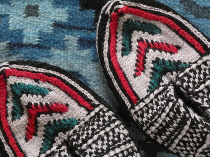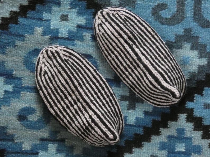 複数色の太い糸での編み込みなので、糸と糸が