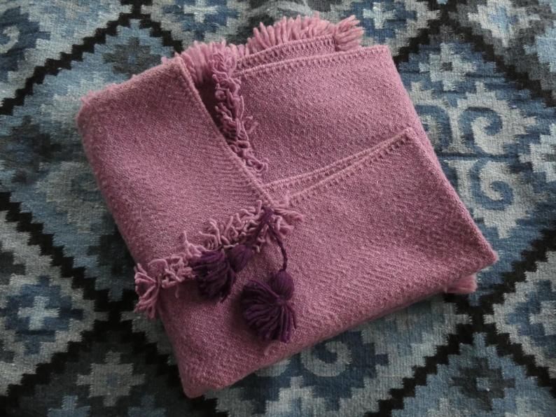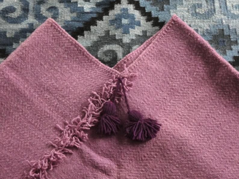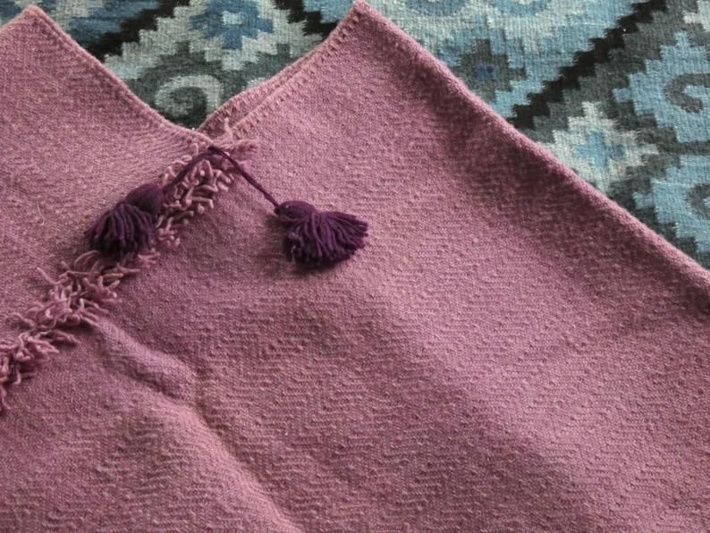 テオティトラン・デル・バジェ 手織りウールポンチョ☆天然染色 薄パープル