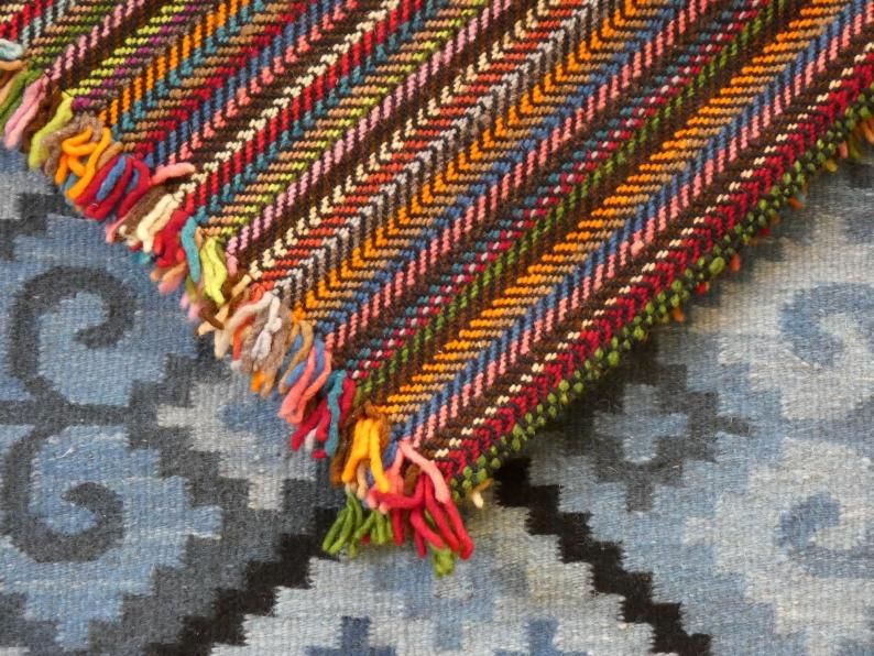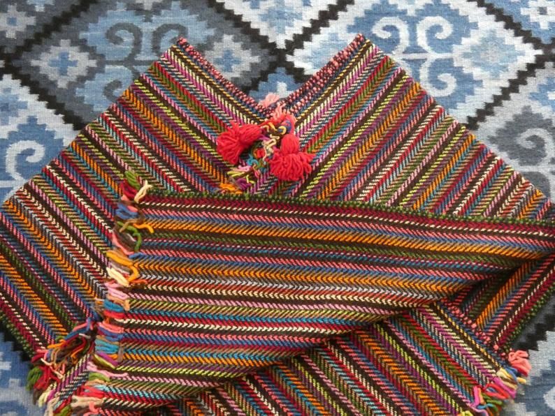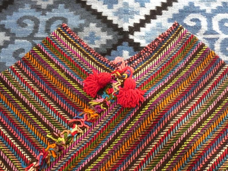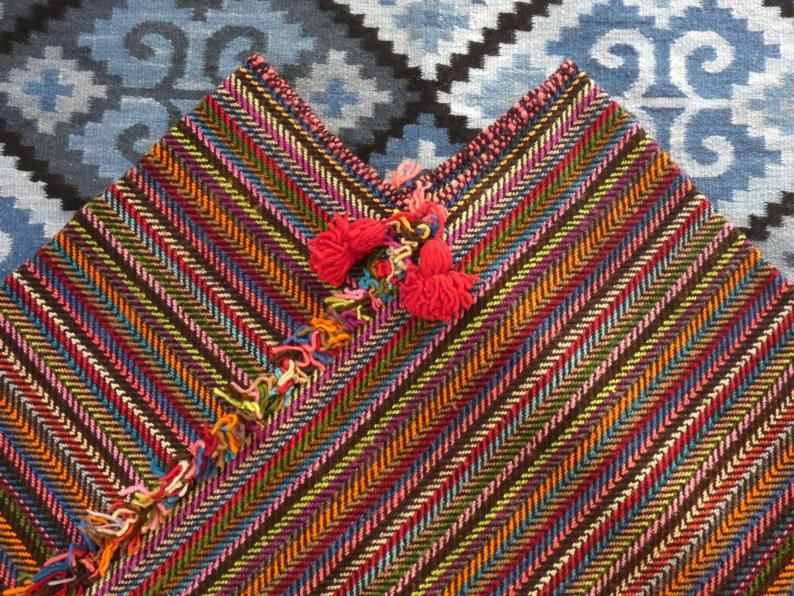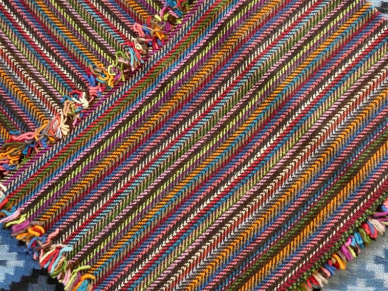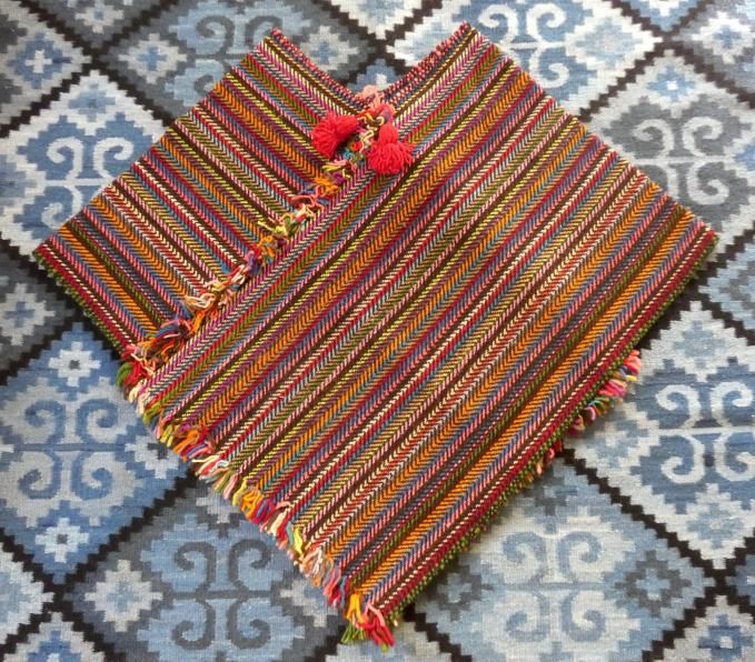 テオティトラン・デル・バジェ 手織りウールポンチョ☆天然染色 ボーダーG