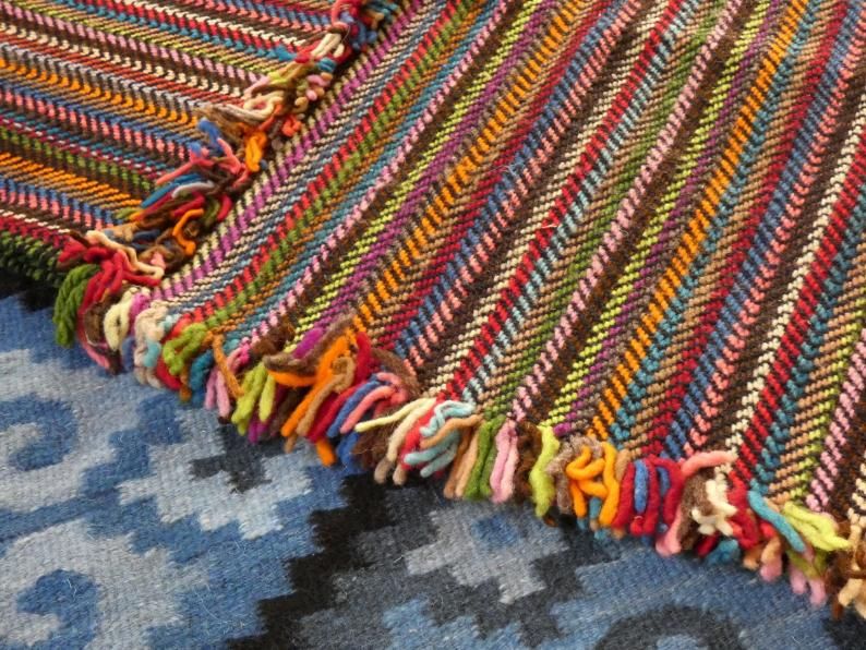 羊毛を紡ぎ天然染料で糸を染め、手で織り