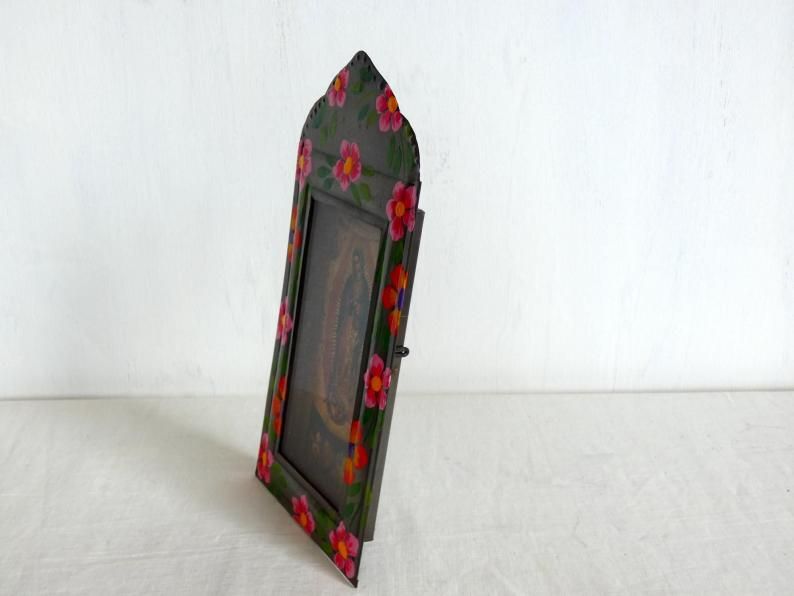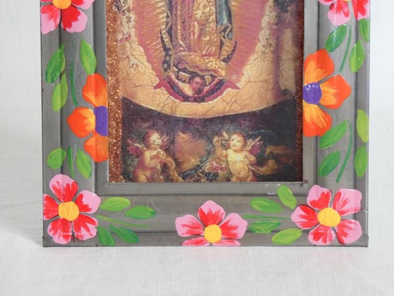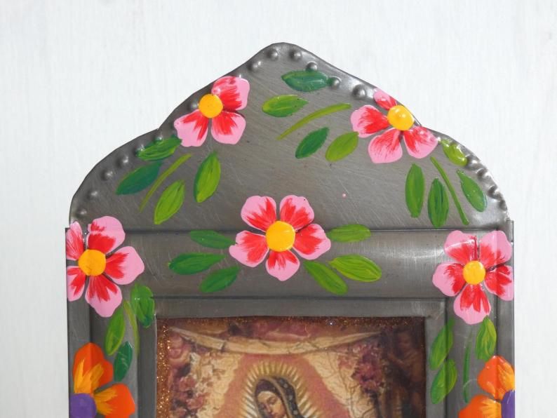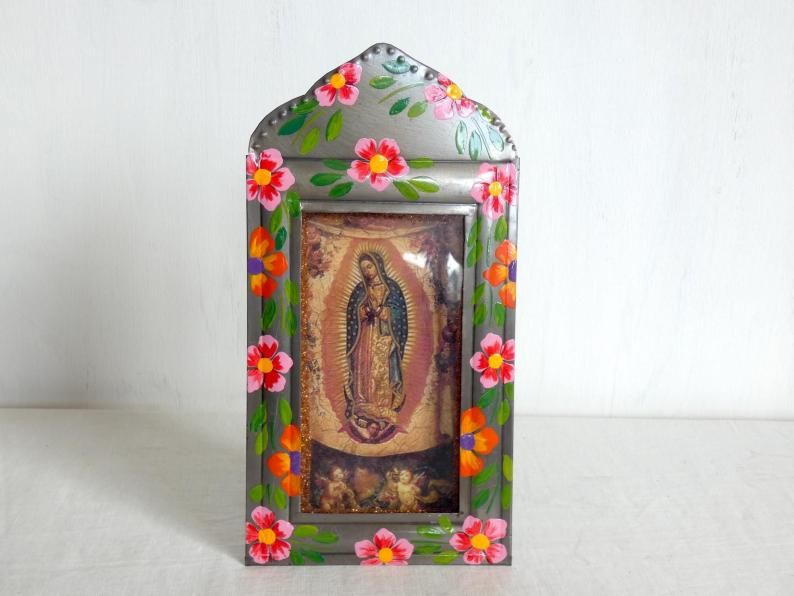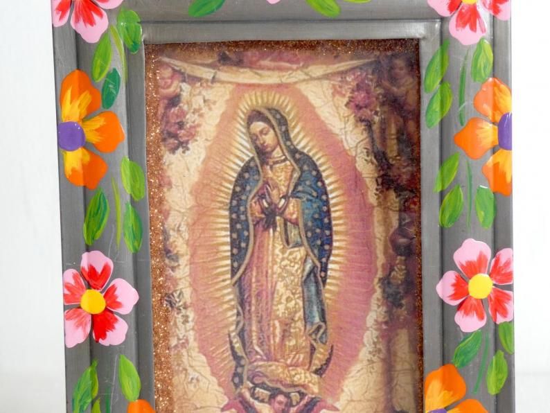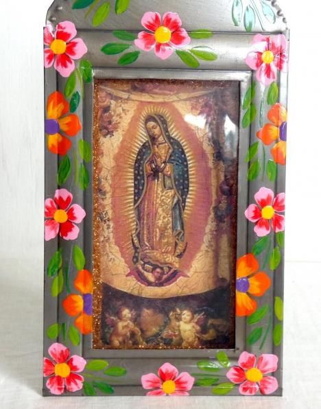 花柄オハラタボックス『マリア様 B』メキシコのブリキアート /ニチョ/壁掛け/飾り