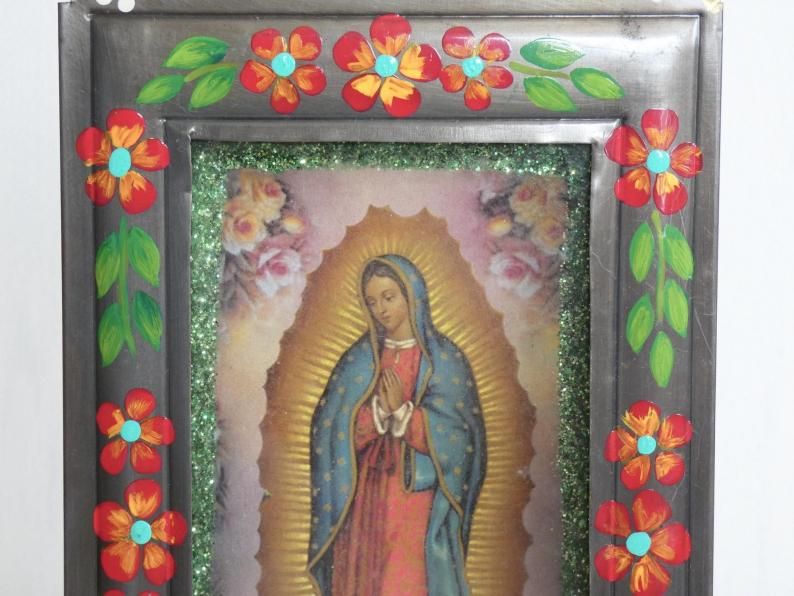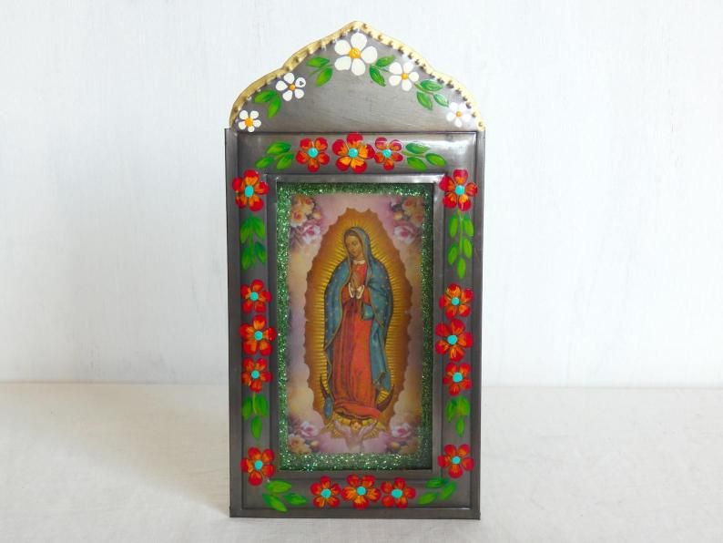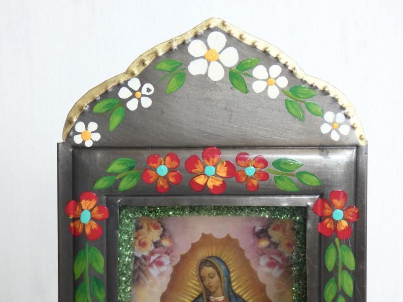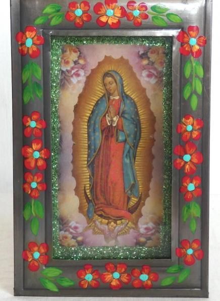 花柄オハラタボックス『マリア様C』メキシコのブリキアート /ニチョ/壁掛け/飾り