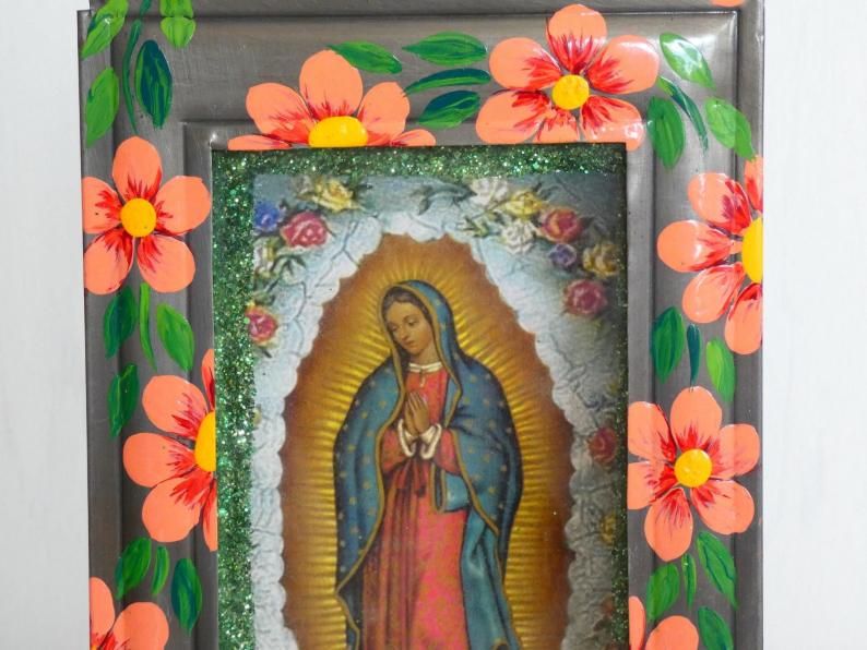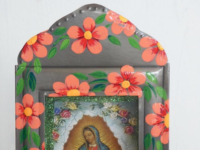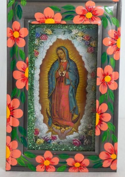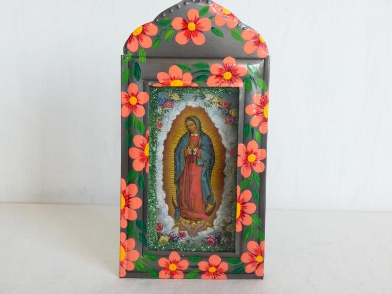 花柄オハラタボックス『マリア様E』メキシコのブリキアート /ニチョ/壁掛け/飾り