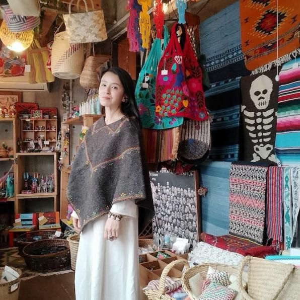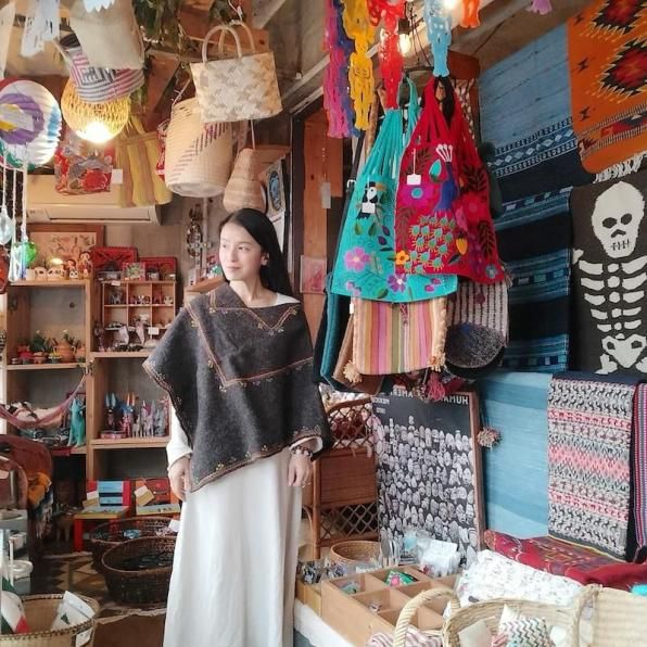 美しい色かたちのメキシコのポンチョ。