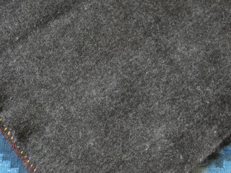 羊毛を織った後、織地をフェルト状にしたものを
