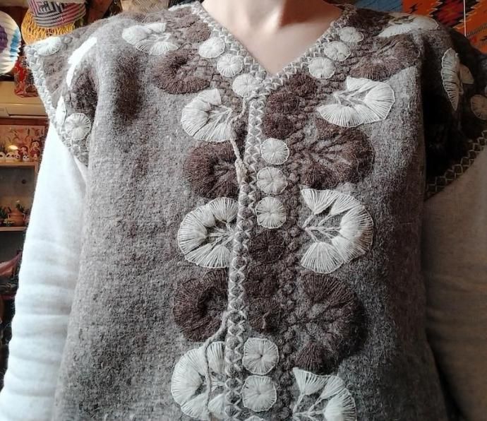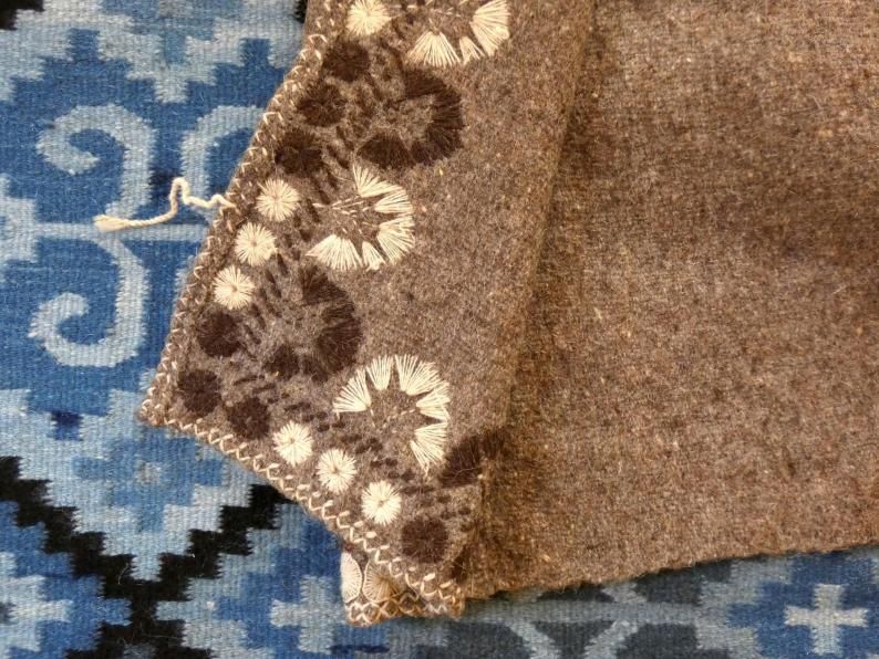 手紡ぎの羊毛を使い厚手のフェルト生地に