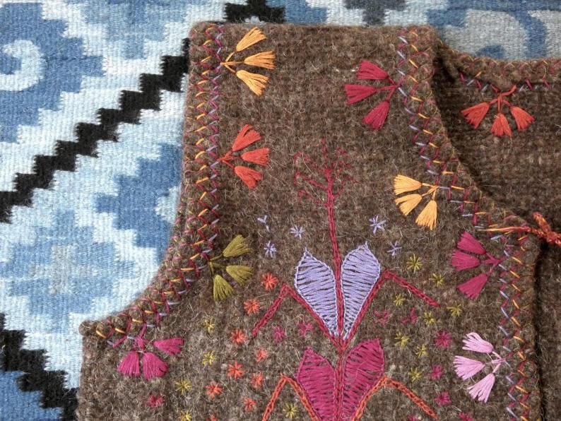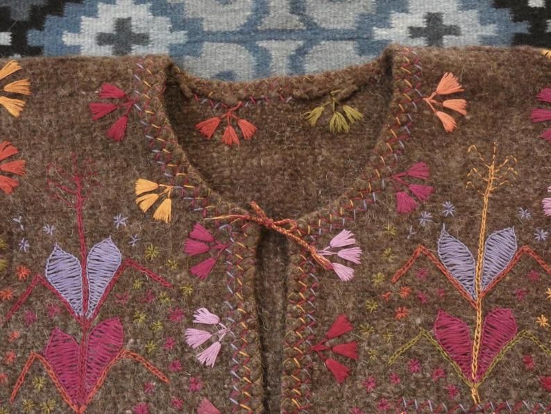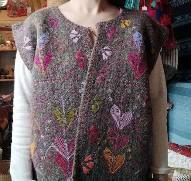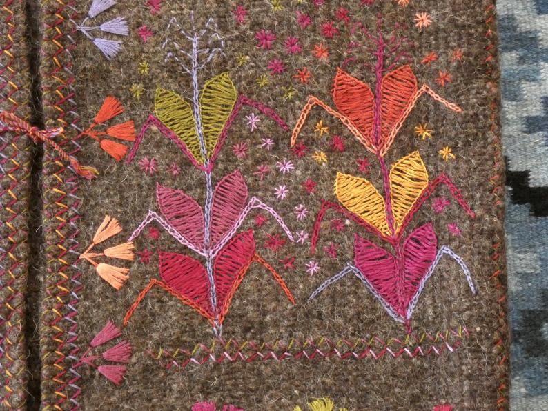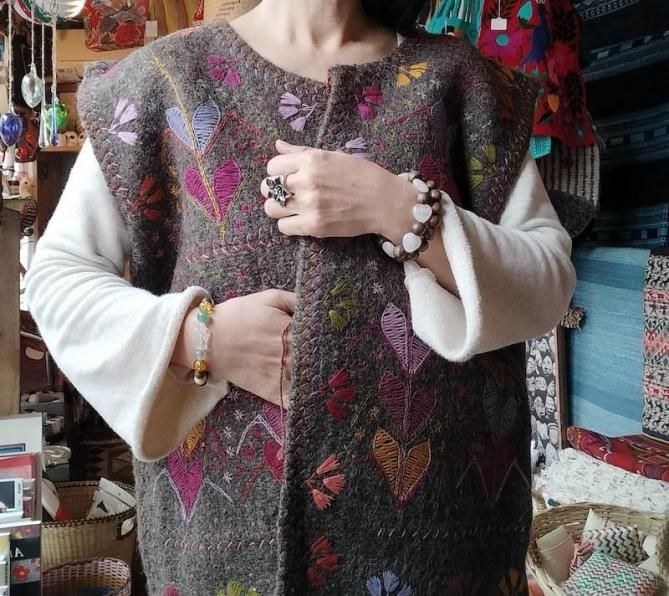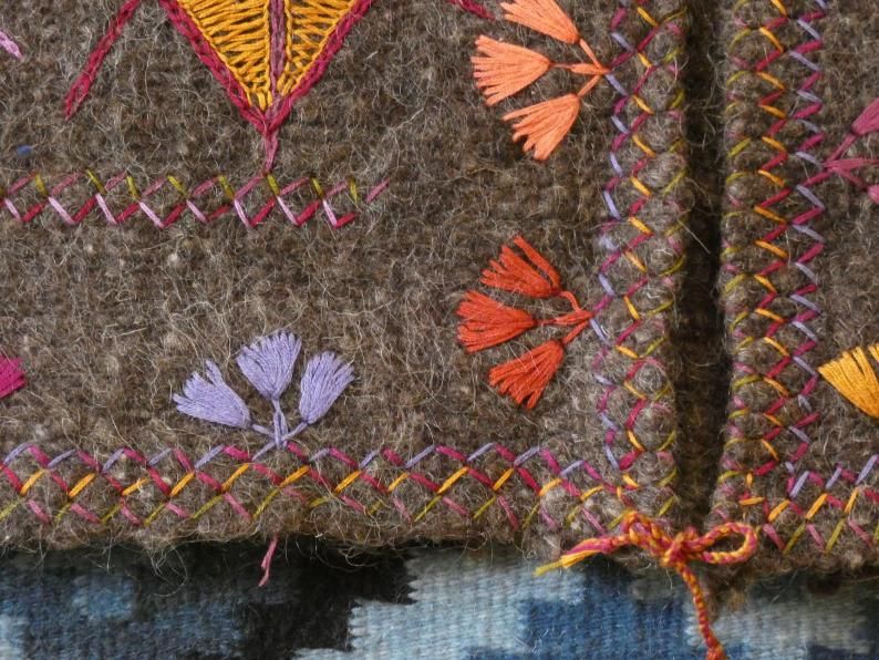 手紡ぎの羊毛を使い厚手のフェルト生地に
