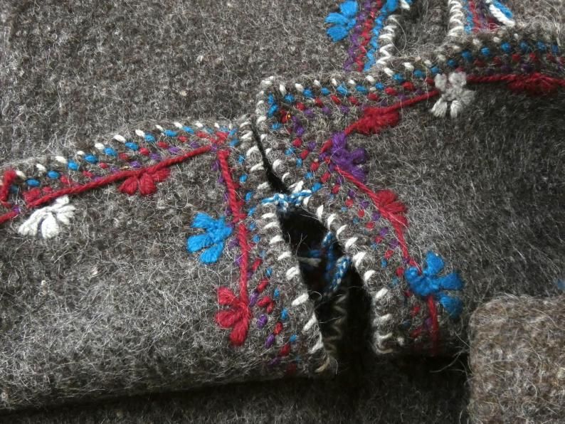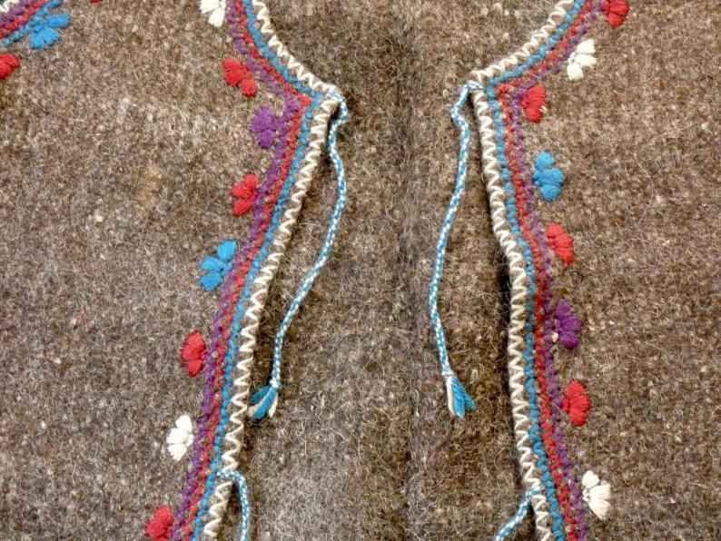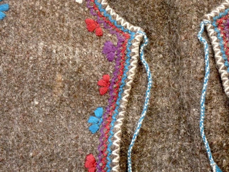 手紡ぎの羊毛を使い厚手のフェルト生地に