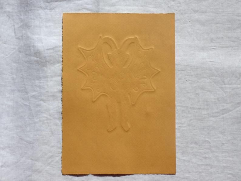 ゴム版のような素材を彫刻刀で彫る技法です。